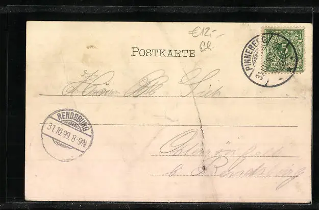 alte Ansichtskarte, gelaufen 1899, Bugspur mittig vertikal, guter Zustand