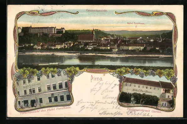 AK Pirna, Gesamtansicht mit Hotel Forsthaus