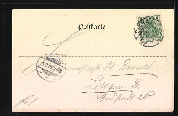 alte Ansichtskarte, gelaufen 1902, Stempelspur, guter Zustand