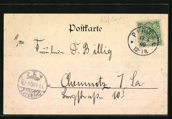 alte Ansichtskarte, gelaufen 1900, Bugspur li. mittig, guter Zustand