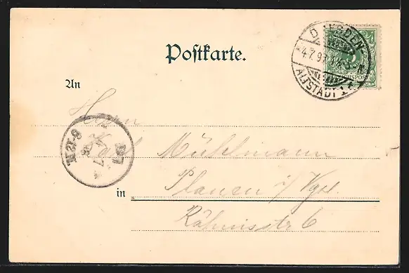 alte Ansichtskarte, gelaufen 1898, Stempelspur, guter Zustand