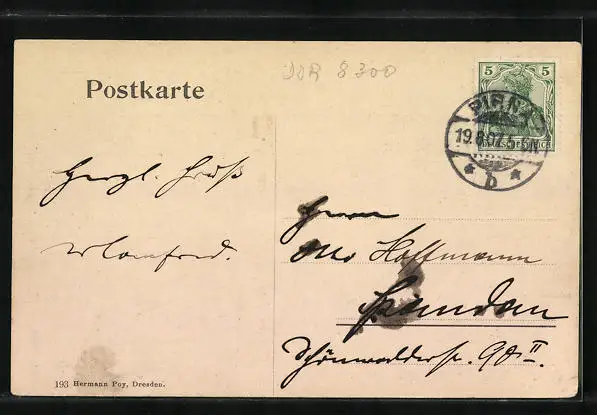 alte Ansichtskarte, gelaufen 1907, Stempelspur, guter Zustand