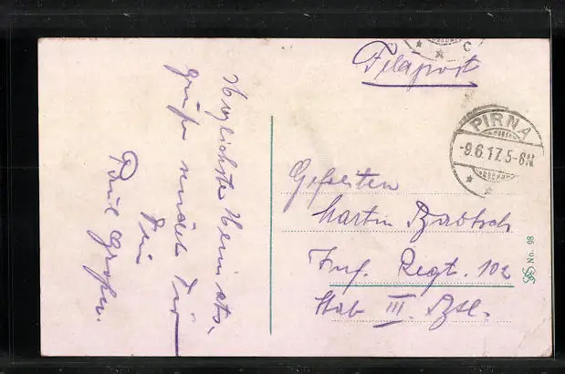 alte Ansichtskarte, gelaufen 1917 als Feldpost, Eckknick li. unten, guter Zustand
