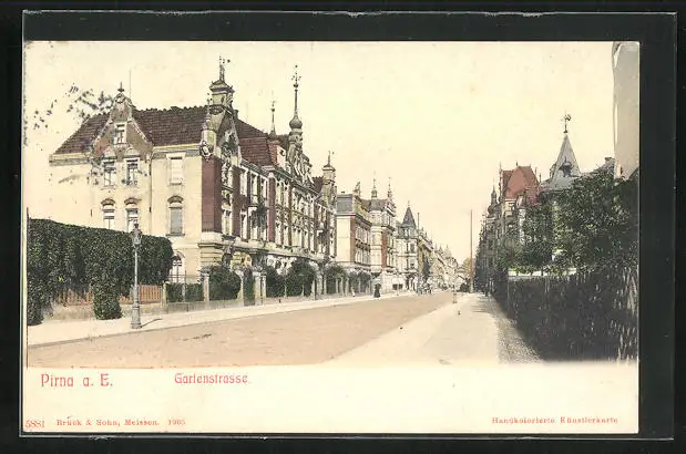 AK Pirna a. E., Gartenstrasse mit Bürgerhäusern