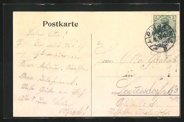 alte Ansichtskarte, gelaufen 1910, Stempelspur, guter Zustand