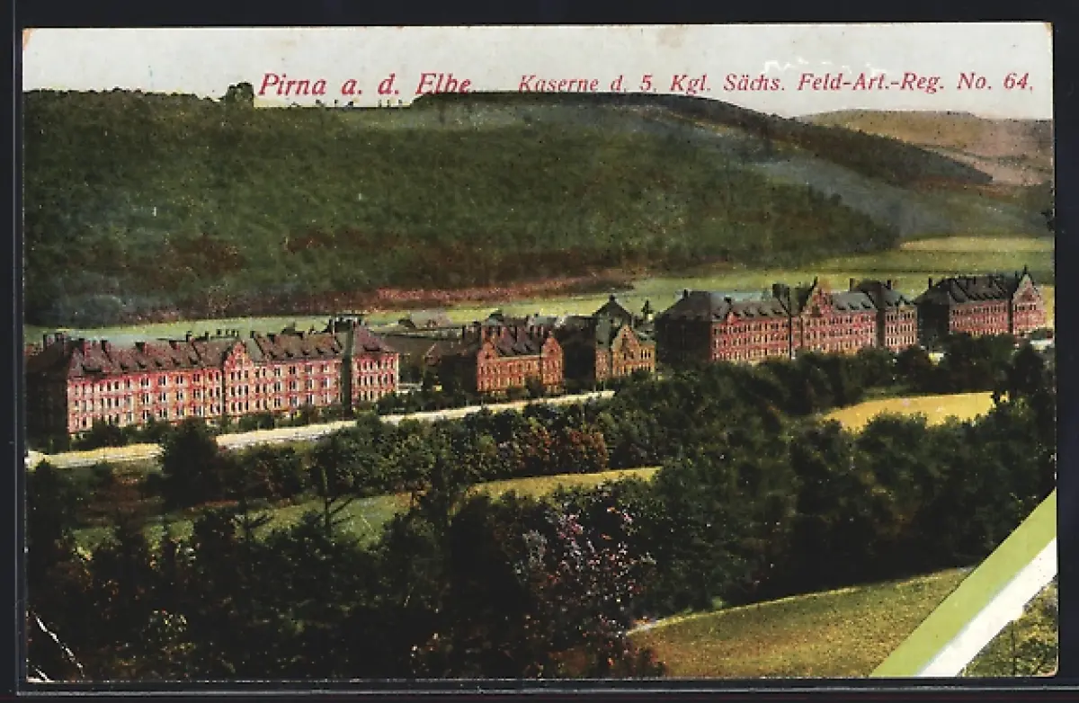 AK Pirna a. d. Elbe, Kaserne d. 5. Kgl. Sächs. Feld-Art.-Reg. No. 64
