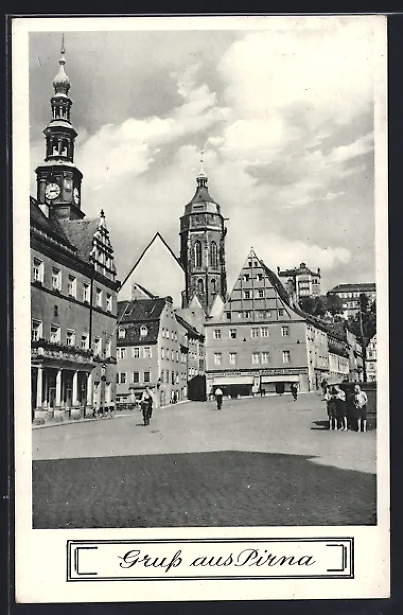 AK Pirna a. d. Elbe, Marktplatz, Rathaus