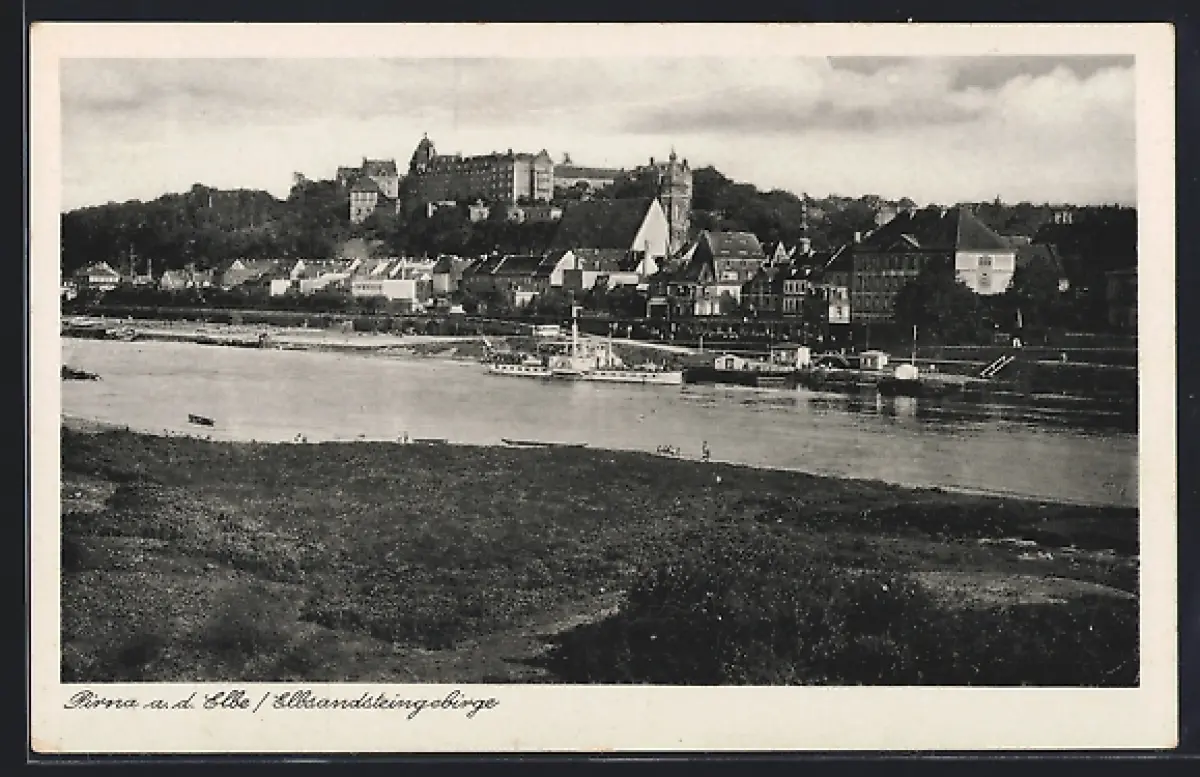 AK Pirna a. d. Elbe, Teilansicht mit Flusspartie