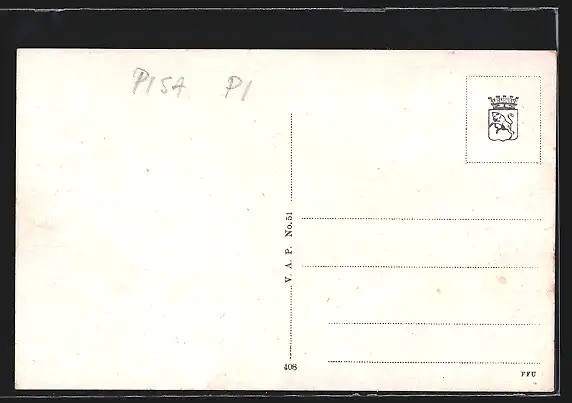 Personenbezogene Daten auf der Rückseite der Karte wurden durch blauen Textmarker unkenntlich gemacht. Die blauen Stellen sind auf die Vorderseite durchgeweicht und wirken sich negativ auf das Postkartenfoto aus