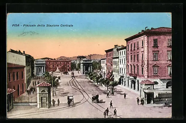 AK Pisa, Piazzale della Stazione Centrale, Strassenbahn