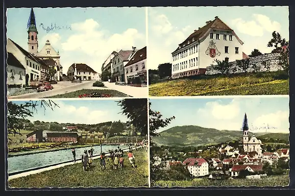 AK Pischelsdorf, Platzansicht mit Schule und Schwimmbad