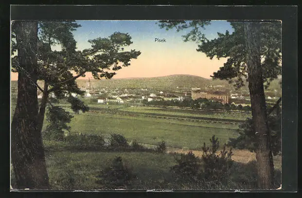 AK Pisek, Gesamtansicht vom Ort im Abendlicht
