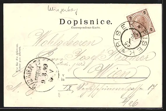 alte Ansichtskarte, gelaufen 1899, Stempelspur, guter Zustand
