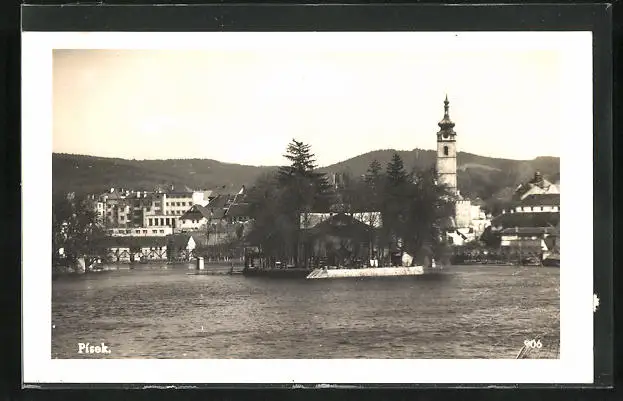 AK Pisek, Totalansicht vom Ort mit Kirche