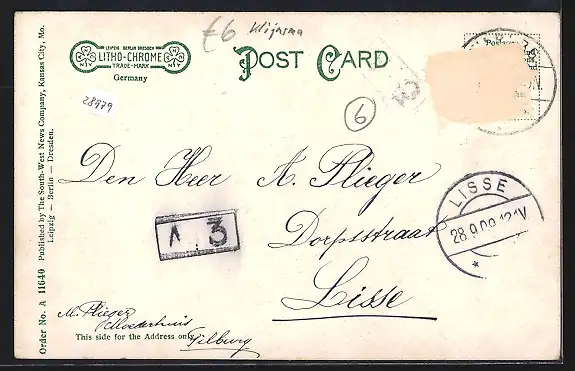 alte Ansichtskarte, gelaufen 1909, Briefmarke entfernt, rückseitig Oberflächenschaden, guter Zustand