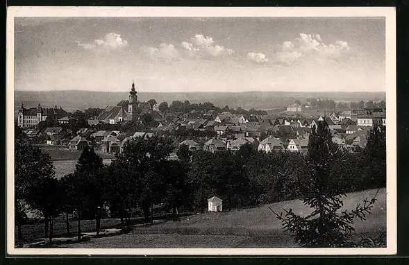 AK Plan, Ortsansicht von einer Anhöhe aus