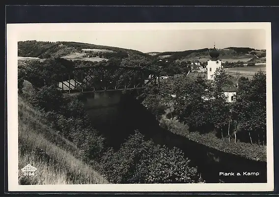 AK Plank a. Kamp, Brücke und Kirche aus der Vogelschau