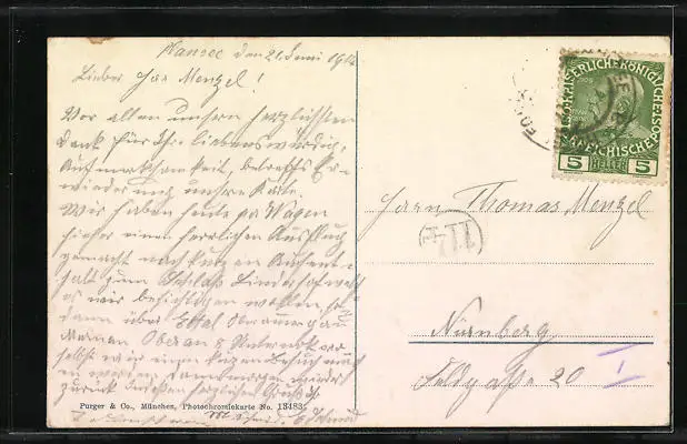 alte Ansichtskarte, gelaufen, Eckknick unten re., guter Zustand