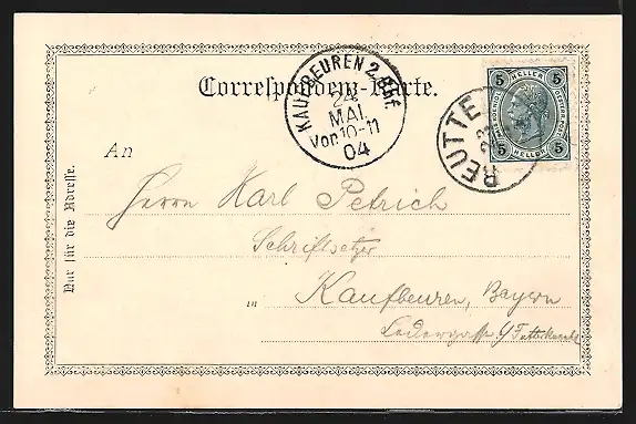 alte Ansichtskarte, gelaufen 1904, guter Zustand