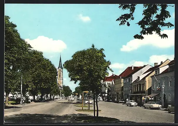 AK Plattling, Ludwigsplatz mit Blick zur Kirche