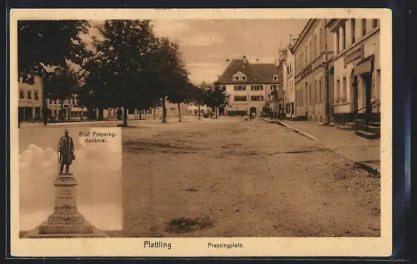 AK Plattling, Preysingplatz, Graf Preysing-Denkmal