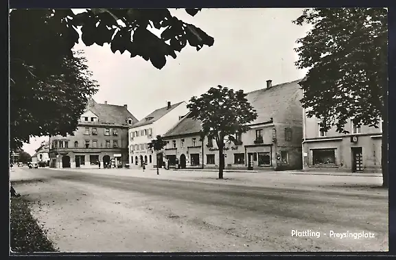 AK Plattling, Strassenpartie am Preysingplatz