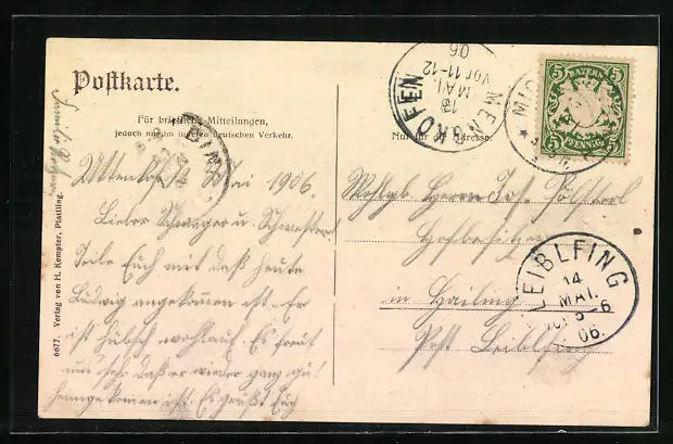 alte Ansichtskarte, gelaufen 1906, guter Zustand