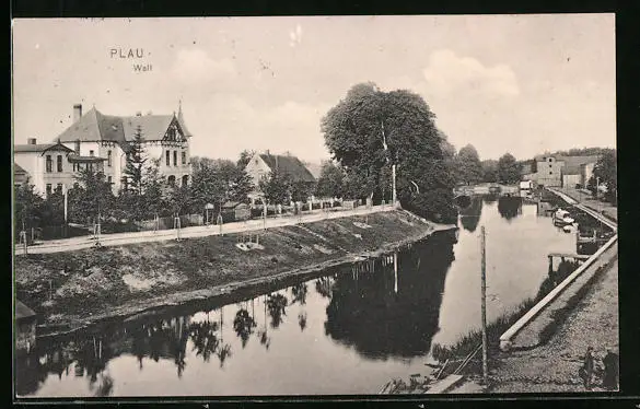 AK Plau, Wall mit Bäumen