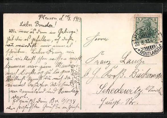 alte Ansichtskarte, gelaufen 1913, Eckknick li. unten, guter Zustand