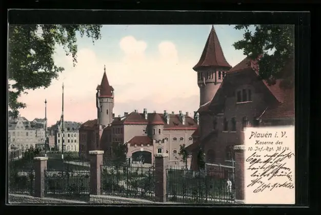 AK Plauen i. V., Kaserne des 10. Infanterie-Regiments No. 134