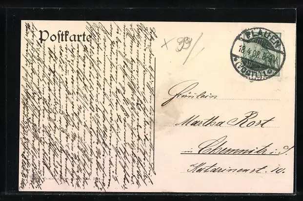 alte Ansichtskarte, gelaufen 1908, guter Zustand