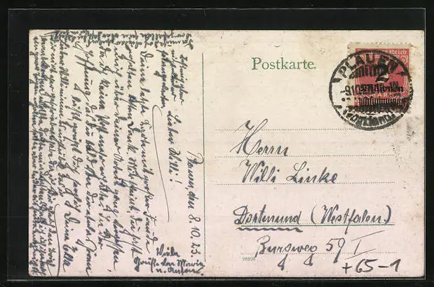alte Ansichtskarte, gelaufen 1923, Bugspuren li. oben u. unten, guter Zustand
