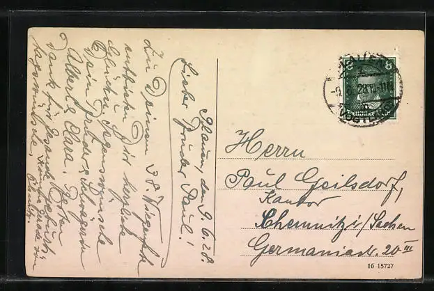 alte Ansichtskarte, gelaufen 1928, guter Zustand
