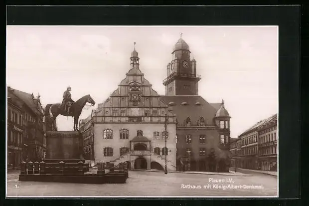 AK Plauen i. V., Rathaus mit König-Albert-Denkmal