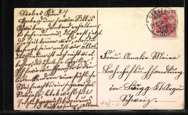 gelaufen 1908, Ecken bestoßen, sonst guter Zustand