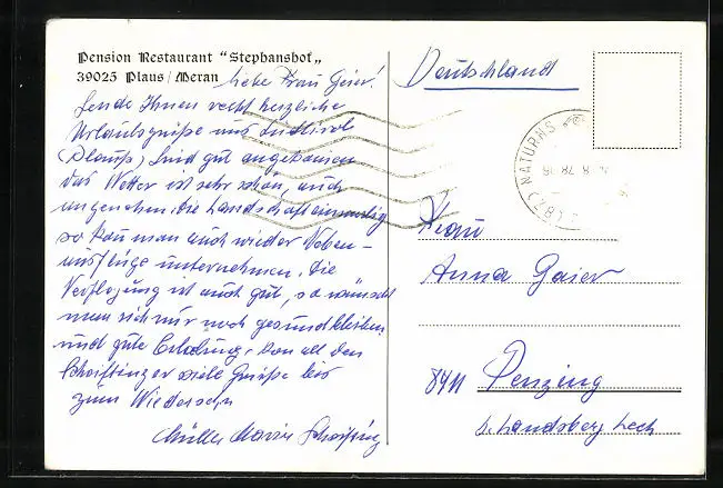 alte Ansichtskarte, gelaufen 1978, Briefmarke entfernt, guter Zustand