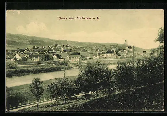 AK Plochingen a. N., Ortspartie mit Gewässer