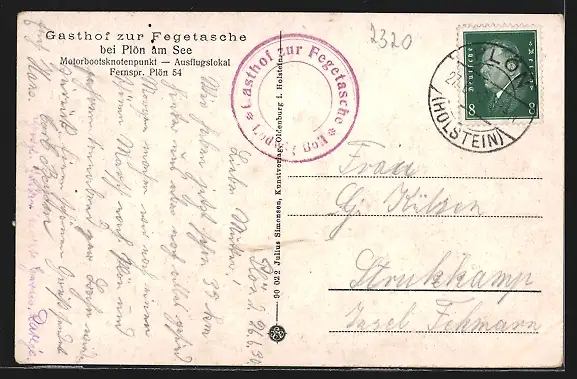 AK Plön am See /Holst. Schweiz, Gasthof zur Fegetasche