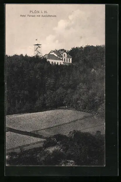 AK Plön i. H., Hotel Parnass mit Aussichtsturm
