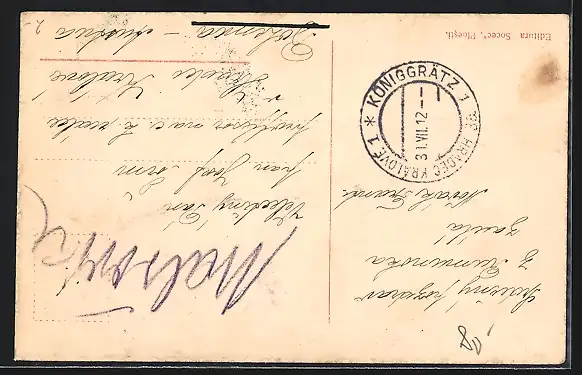 gelaufen 1912, Briefmarke entfernt, minimaler Einriss re. oben, guter Zustand