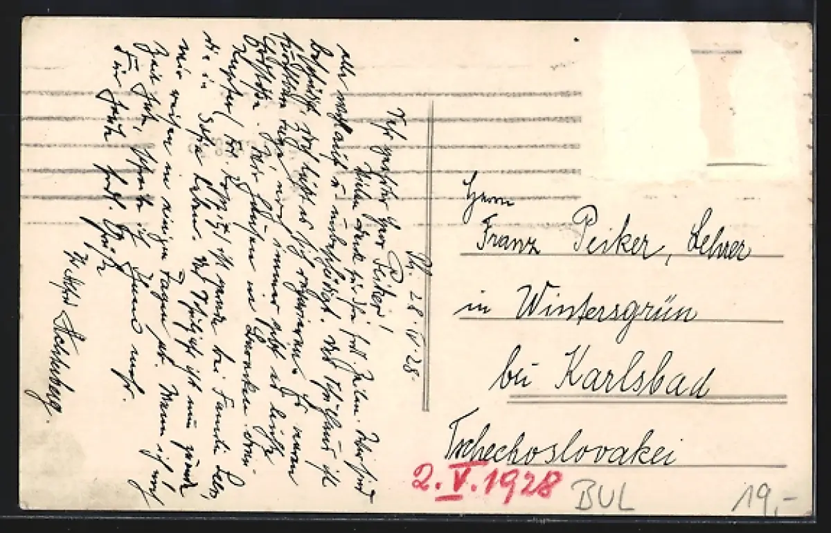 alte Ansichtskarte, gelaufen, Briefmarke entfernt, guter Zustand