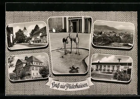 AK Plüderhausen, versch. Ansichten aus dem Ort mit Kirche u. VW-Käfer