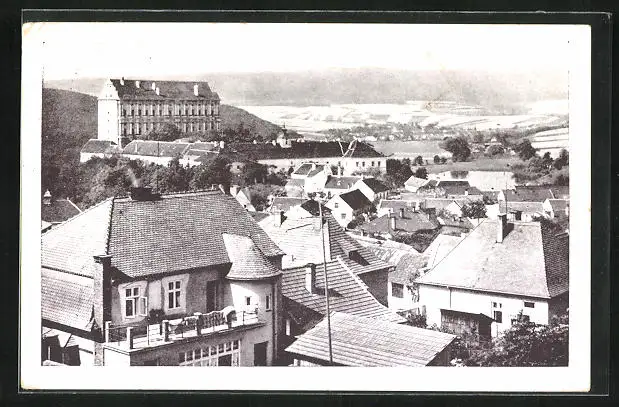 AK Plumlov, Panorama mit Berglandschaft