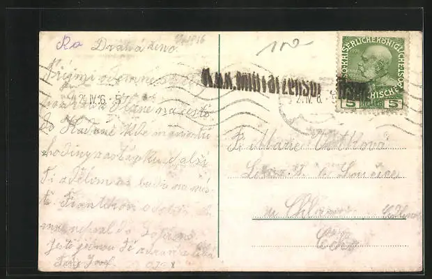alte Ansichtskarte, gelaufen 1916, Eckknicke li. oben u. re., Stempelspur, guter Zustand