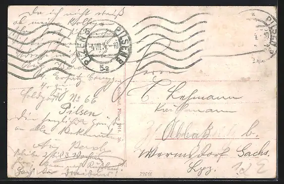gelaufen 1914, Briefmarke entfernt, guter Zustand