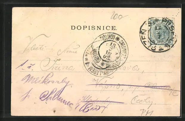 alte Ansichtskarte, gelaufen, Eckknick re. oben, Bugspur mittig, Einriss re. mittig, Stempelspur, guter Zustand