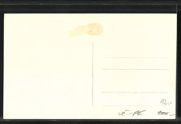 Personenbezogene Daten auf der Rückseite der Karte wurden durch blauen Textmarker unkenntlich gemacht. Die blauen Stellen sind auf die Vorderseite durchgeweicht und wirken sich negativ auf das Postkartenfoto aus