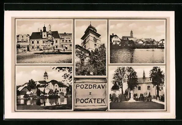 AK Pocatky, Námesti, Kostel, Celkový pohled