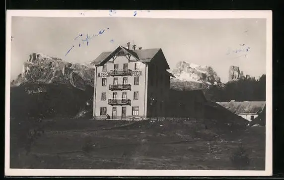 Personenbezogene Daten auf der Rückseite der Karte wurden durch blauen Textmarker unkenntlich gemacht. Die blauen Stellen sind auf die Vorderseite durchgeweicht und wirken sich negativ auf das Postkartenfoto aus