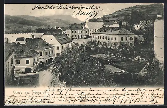 AK Pöggstall, Ortspartie aus der Vogelschau
